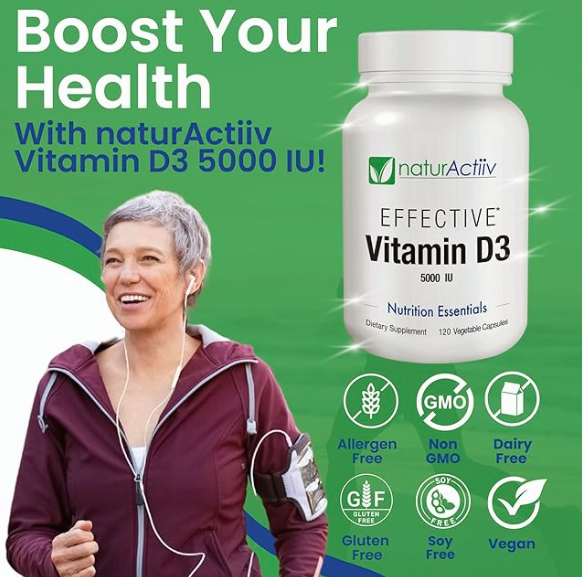 Boost your immunity and overall wellness with NaturActiiv Vitamin D3 5000 IU! Strengthen your immune system, support healthy bones, and enhance your mood—all with one powerful supplement. Shop now on Amazon and feel the difference!