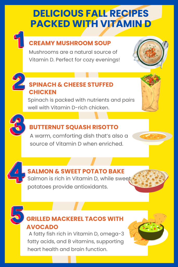 From creamy mushroom soup to savory salmon and sweet potato bake, these dishes are not only comforting but also great for your immune and bone health.