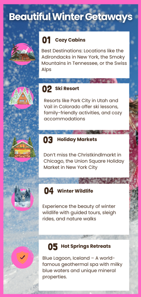 Winter is the perfect time to escape to beautiful getaways that offer cozy cabins, thrilling ski resorts, and enchanting holiday markets. Whether you’re looking for a romantic retreat, a family adventure, or a solo escape, these winter destinations provide the ideal backdrop for unforgettable memories.